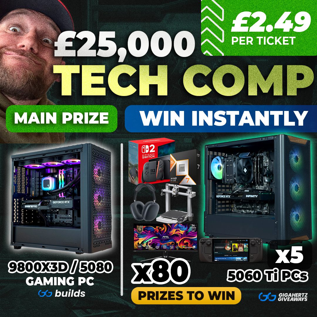 Win PCs, Switches, 9800X3Ds, £1000 Cash, SteamDecks, and more… all instantly!