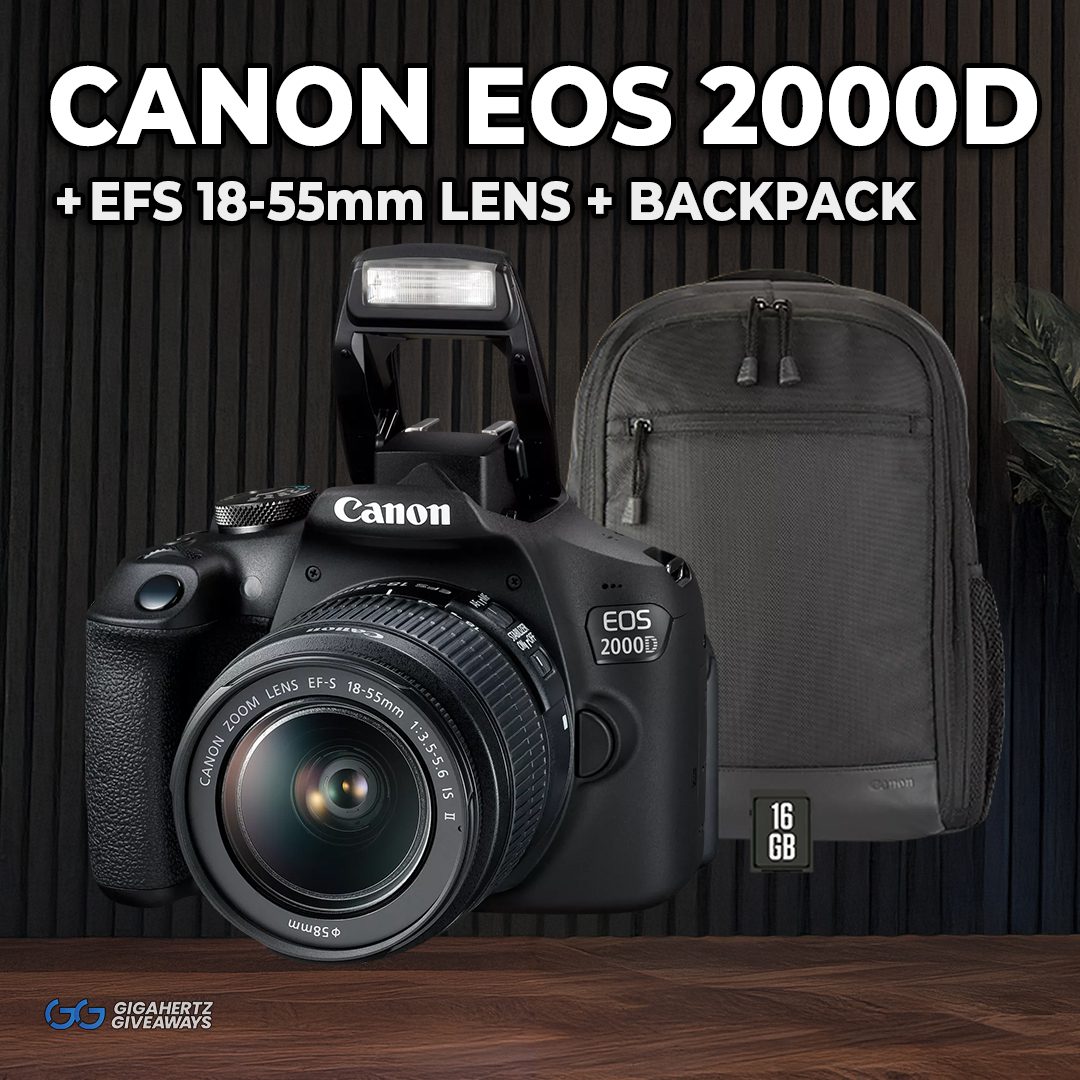 Main Prize: Canon EOS 2000D Camera + EF-S 18-55mm IS II Lens + Backpack