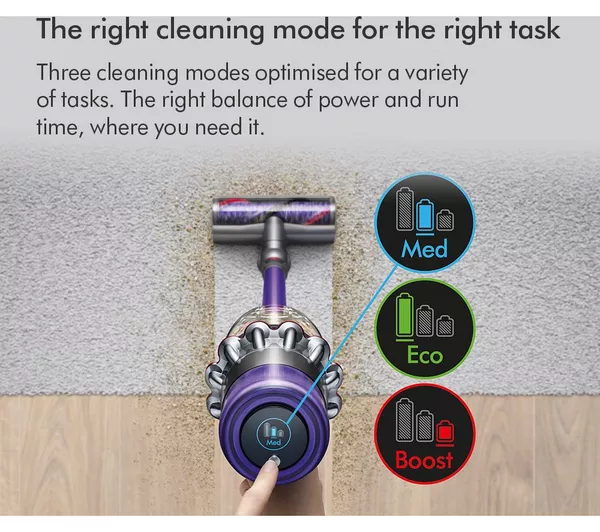 A clean home is a happy home. This Dyson V11 Extra gives you up to 60 minutes of fade-free suction. Clean here, there and everywhere without stopping. It’s all thanks to the powerful Dyson Hyperdynium motor. It spins extra fast to produce more suction, without adding any extra weight or bulk. And the Detangling Motorbar lifts long hair and pet hair from your floors with ease. Better still, its specially-designed vanes mean you won’t need to unclog it as you’re cleaning. It’s a life saver if you share your home with furry friends.