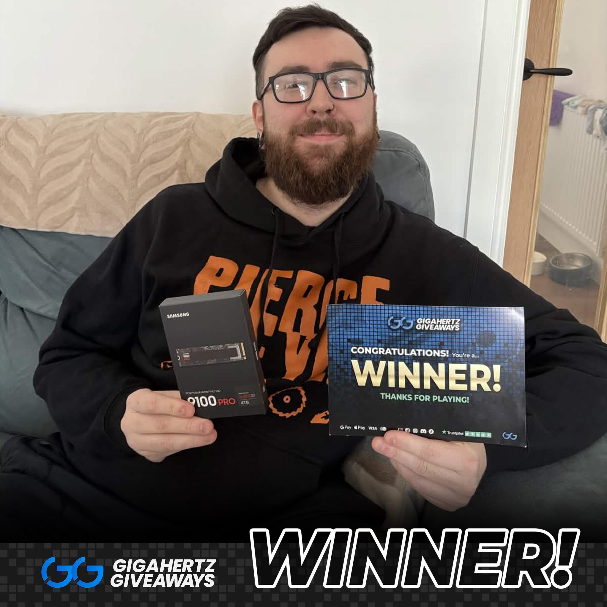 The live draw will take place on the Gigahertz Giveaways UK Ltd Facebook page using Google’s random number generator to select the winning ticket number from all Entrants.